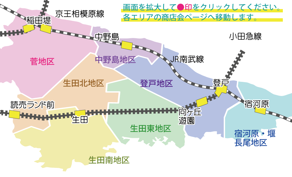 お買い物は、笑顔と思いやりのある登戸東通り商店会へお越しください。